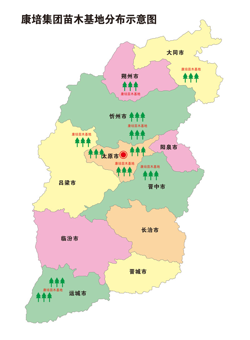 經(jīng)過20年的發(fā)展,康培集團陸續(xù)在太原、晉中、運城、忻州、大同、朔州、呂梁等7個地市建立了苗木種植、小苗自繁、苗木快繁、容器苗木、花卉培育等生產(chǎn)基地,培育和儲備了喬木、花灌木、地被等42科300多個品種的不同規(guī)格的苗木。