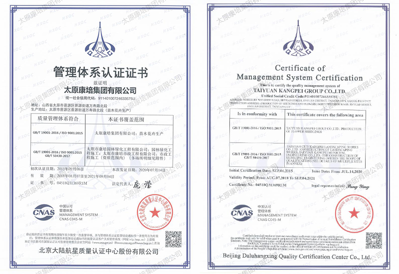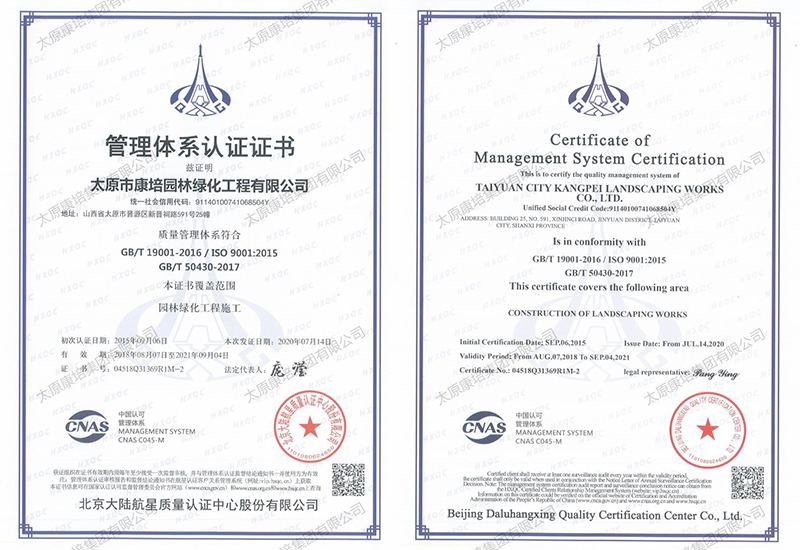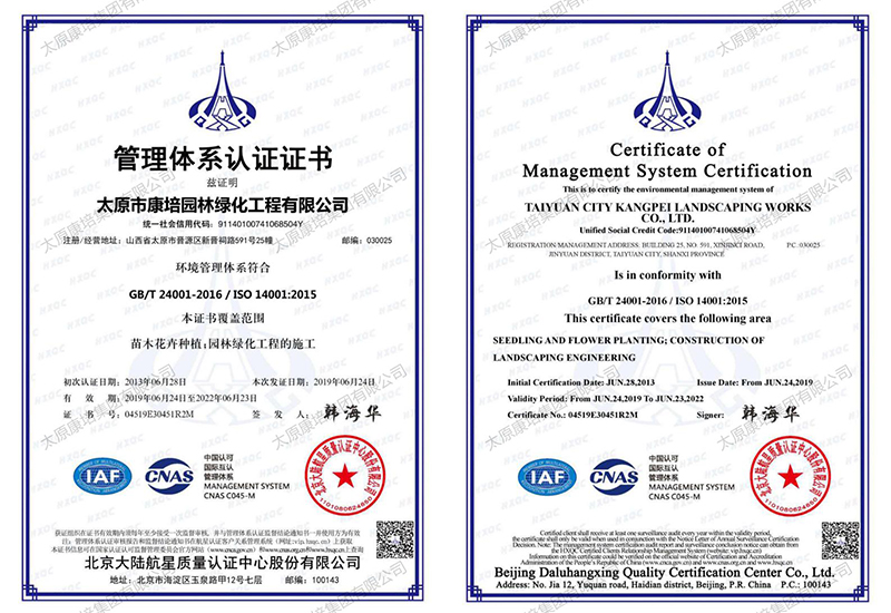 公司現(xiàn)有施工機(jī)械2000余臺(tái),在太原、忻州、晉中、運(yùn)城等7個(gè)地市有苗木基地,擁有從花卉苗木培育到園林景觀綠化測(cè)繪施工再到養(yǎng)管維護(hù)的園林景觀綠化和生態(tài)環(huán)境修復(fù)全產(chǎn)業(yè)鏈,完成和參與了包括省、市重點(diǎn)工程在內(nèi)的1000余項(xiàng)園林景觀綠化、道路綠化、城市改造、市政工程和生態(tài)環(huán)境綜合治理工程,施工足跡遍布全省,超百項(xiàng)工程獲得國家、省、市優(yōu)質(zhì)工程表彰,通過了ISO9001質(zhì)量管理體系認(rèn)證。